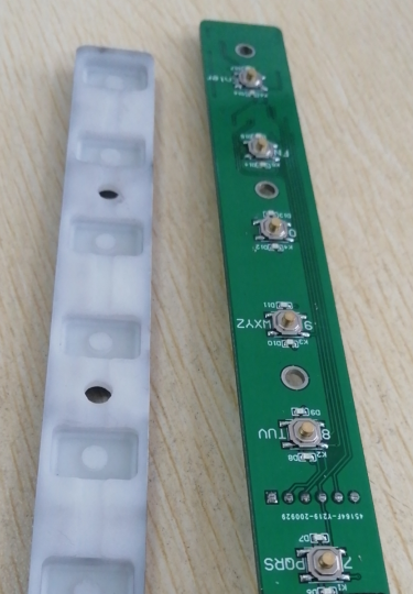 1:硅胶按键 + 扫描及解码电路PCB使用锅仔片。
